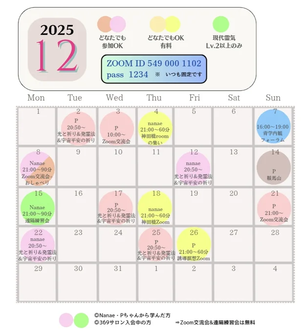 🌿霊気関連の日程について(日付順に記載)🌿✨